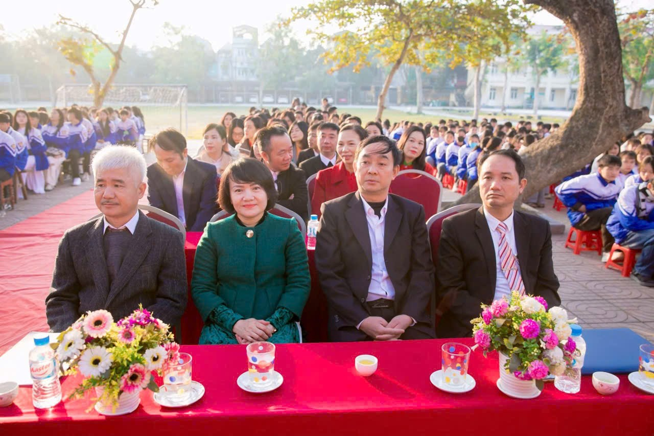 Dự buổi lễ có các đồng chí: Lê Ngọc Quân, Phó Bí thư Đảng ủy, Chủ tịch UBND xã; Cao Đăng Dương, Ủy viên Ban Chấp hành Đảng bộ, Trưởng phòng Văn hóa – Xã hội; đại diện Hội phụ huynh học sinh; Ban Giám hiệu cùng toàn thể cán bộ, giáo viên, nhân viên và học sinh nhà trường.