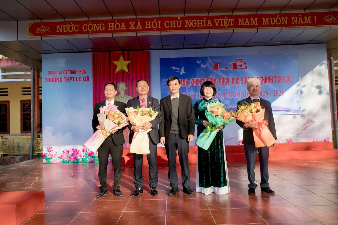 Tại buổi lễ, Trường THPT Lê Lợi đã tổ chức vinh danh, tuyên dương và khen thưởng cho giáo viên và học sinh có thành tích xuất sắc trong học kỳ I năm học 2025–2026.
