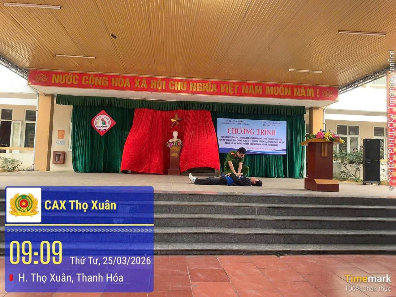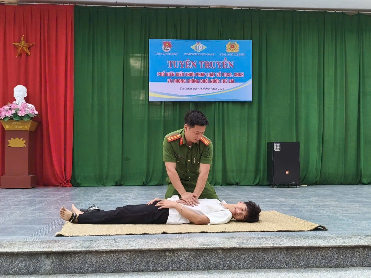 Bên cạnh đó, Công an xã còn phối hợp với các cơ sở giáo dục như Trường THCS Xuân Hồng (cơ sở 3), Trường Tiểu học Xuân Hồng (cơ sở 3) và Trung tâm GDNN-GDT Thọ Xuân tổ chức nhiều buổi tuyên truyền chuyên đề. Nội dung được truyền đạt trực quan, sinh động, giúp học sinh dễ tiếp thu và ghi nhớ. Không chỉ dừng lại ở lý thuyết, các em còn được hướng dẫn kỹ năng cứu nạn, cứu hộ và sơ cấp cứu ban đầu, từ đó nâng cao khả năng tự bảo vệ bản thân và hỗ trợ người khác khi cần thiết.