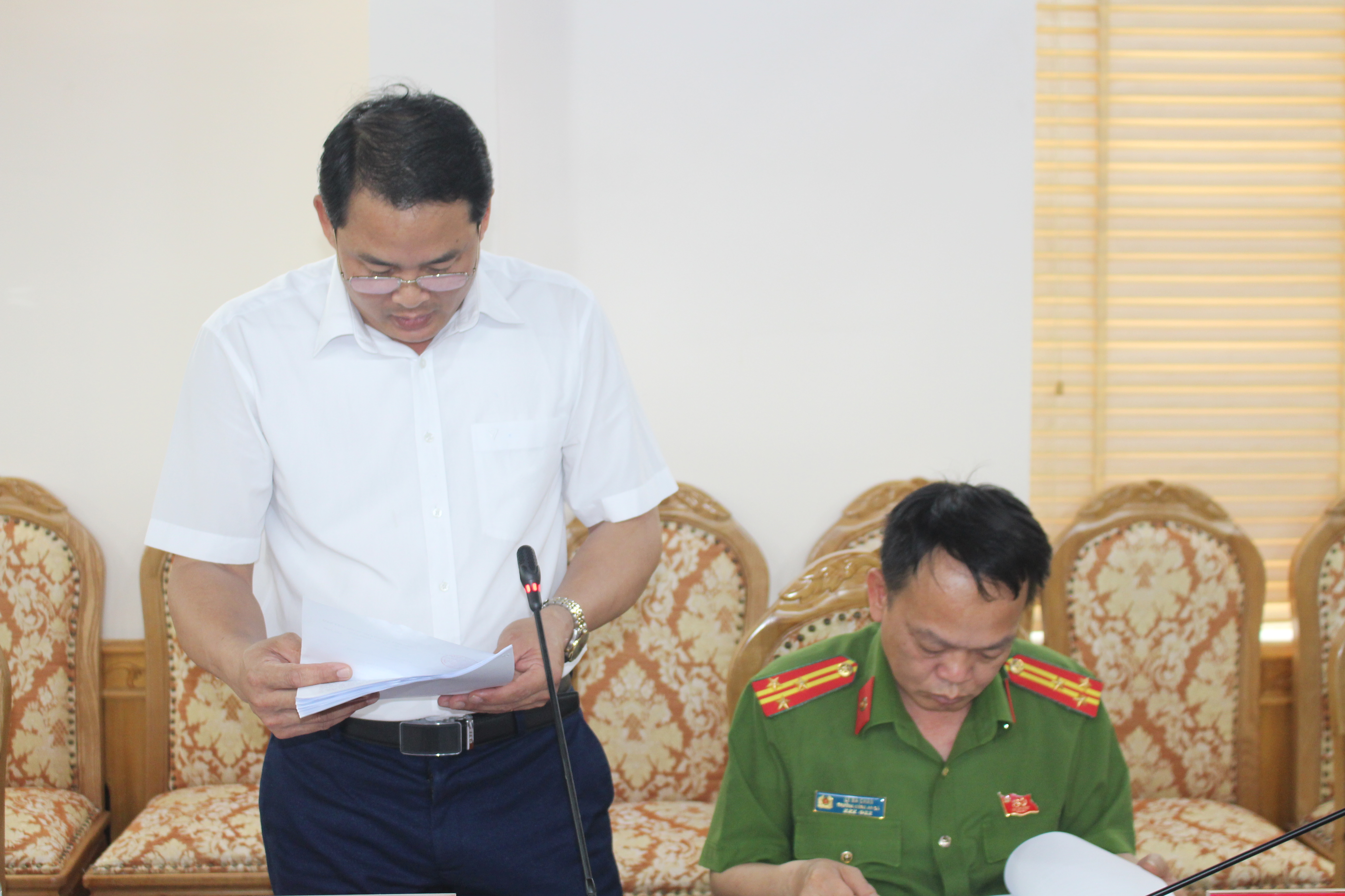 Đồng chí Lê Văn Hoàn, ĐUV, Phó Chủ tịch UBND báo cáo tại hội nghị
